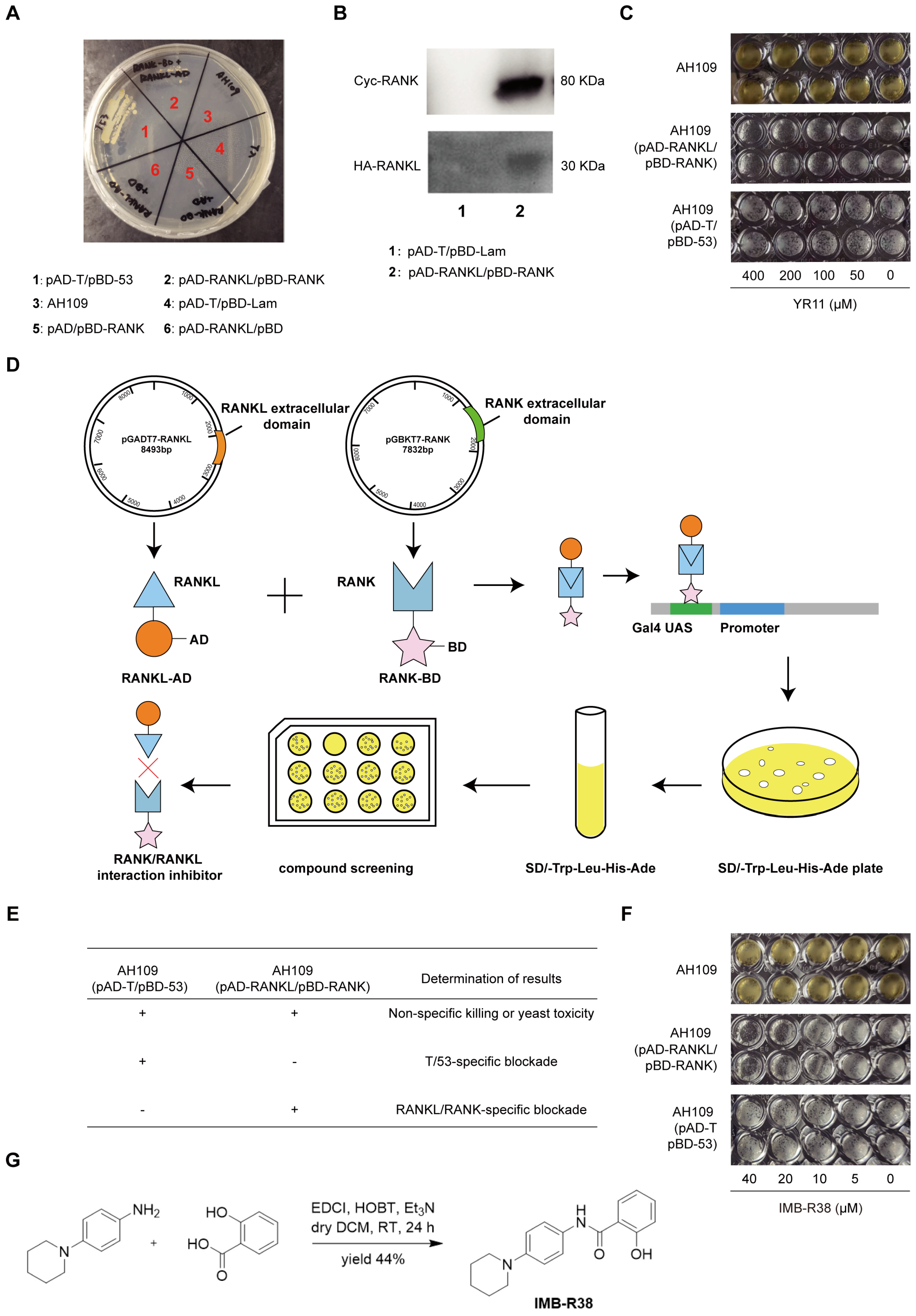 2.2. IMB-R38 Blocks RANKL/RANK Interaction in the Yeast Two-Hybrid System