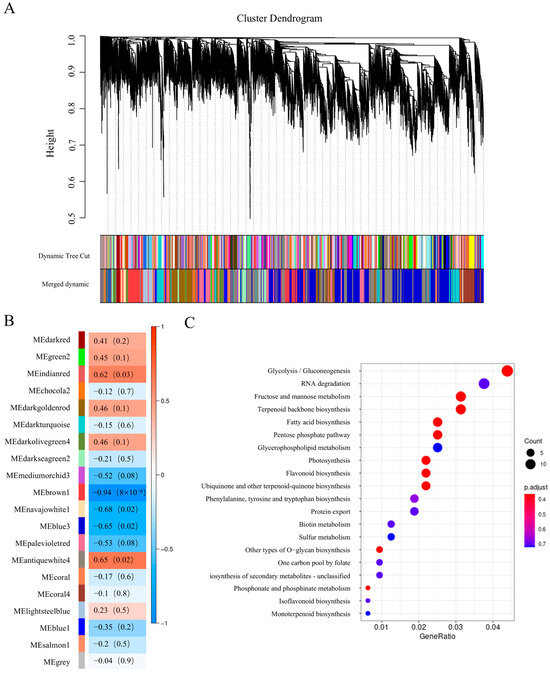 - Chen, J.M.; Xie, L.H.; Lin, Y.; Zhong, B.L.; Wan, S.B. Transcriptome and weighted gene co-expression network analyses reveal key genes and pathways involved in early fruit ripening in Citrus sinensis. BMC Genom. 2024, 25, 735. [Google Scholar] [CrossRef]
