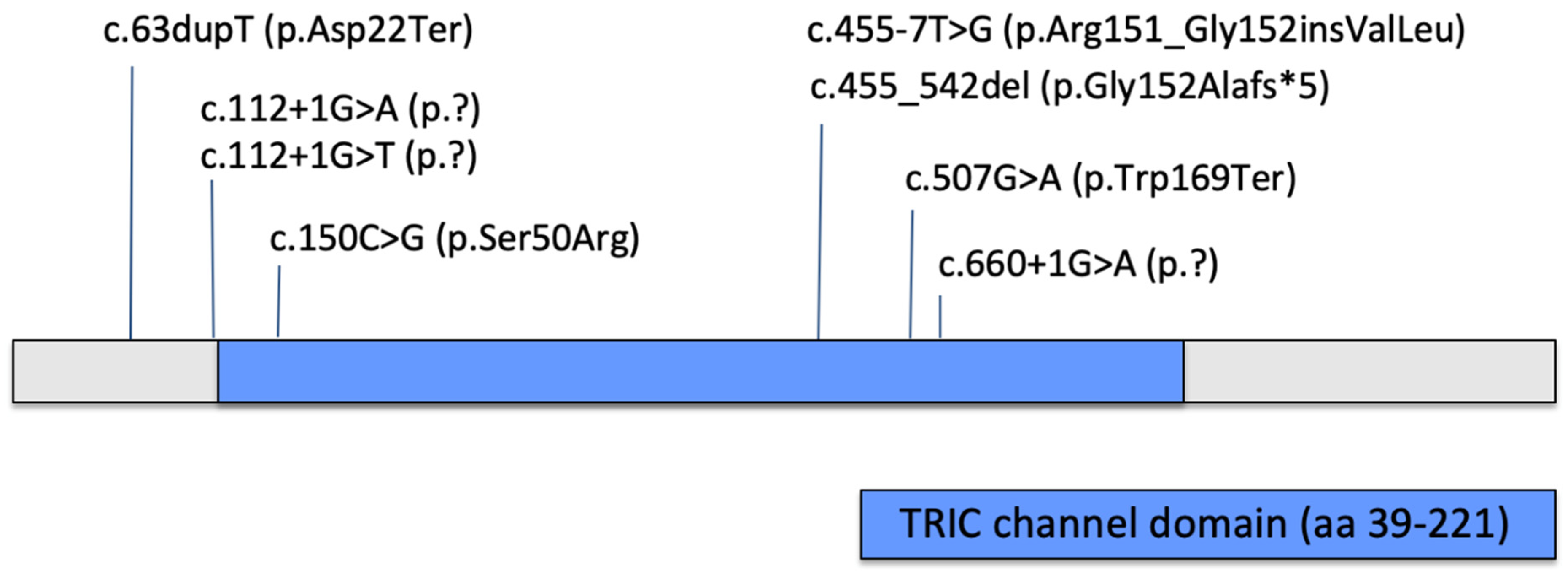 TMEM38B gene encodes a widely expressed endoplasmic reticulum protein, the trimeric intracellular cation channel type B, which is involved in the regulation of calcium homeostasis and bone mineralization. Patients with
