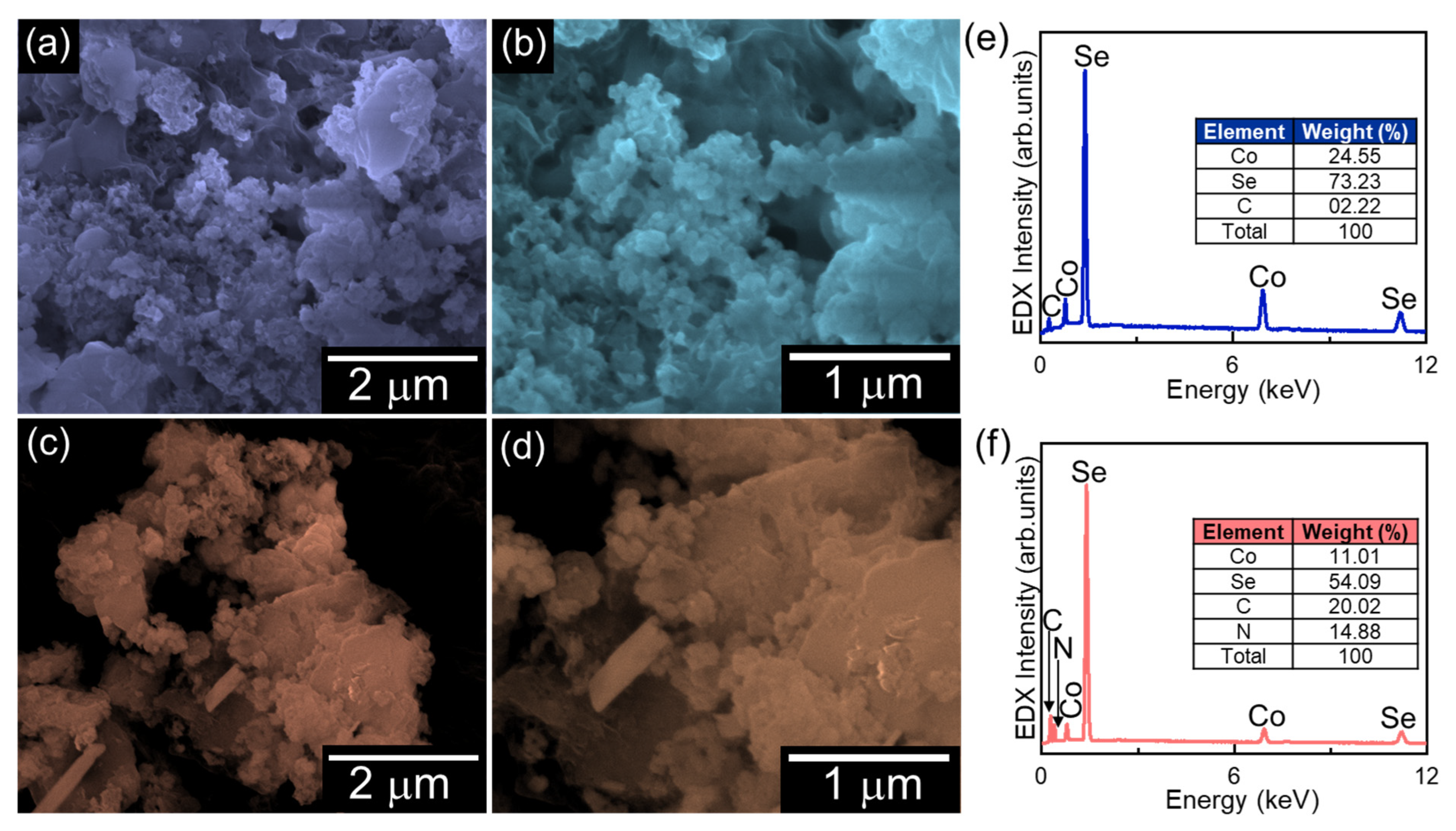 - Lan, K.; Li, J.; Zhu, Y.; Gong, L.; Li, F.; Jiang, P.; Niu, F.; Li, R. Morphology engineering of CoSe2 as efficient electrocatalyst for water splitting. J. Colloid Interface Sci. 2019, 539, 646–653. [Google Scholar] [CrossRef]