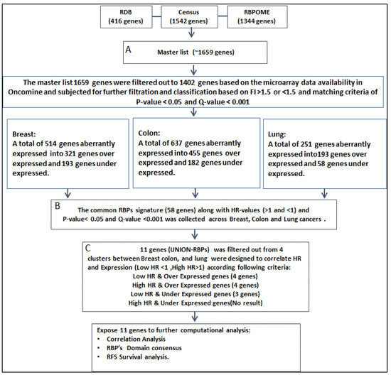 APA StyleBakheet, T., Al-Mutairi, N., Doubi, M., Al-Ahmadi, W., Alhosaini, K., & Al-Zoghaibi, F. (2025). A Computational Recognition Analysis of Promising Prognostic Biomarkers in Breast, Colon and Lung Cancer Patients. International Journal of Molecular Sciences, 26(3), 1017. https://doi.org/10.3390/ijms26031017