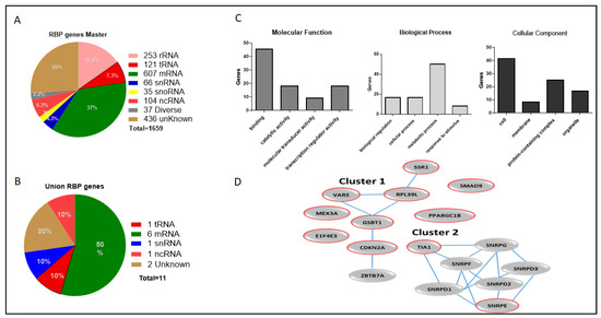 2.2. The Functional Analysis of the Union RBP Consensus Targets and the Suggested Protein–Protein Network Interactions: