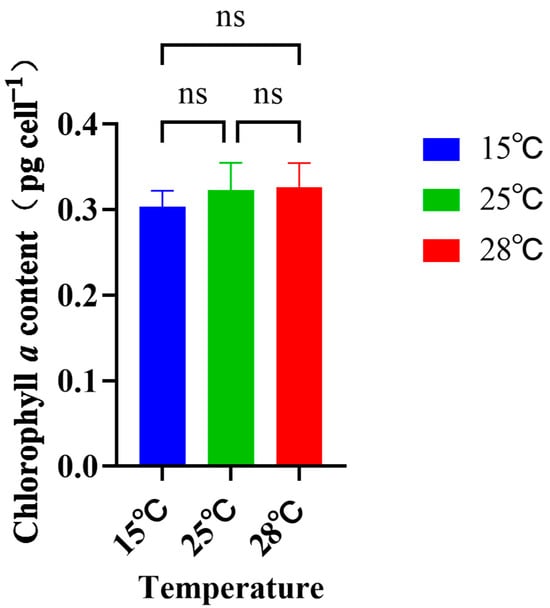 Chlorophyll a content of Skeletonema dohrnii cultured under different temperature conditions (ns indicates not significant).