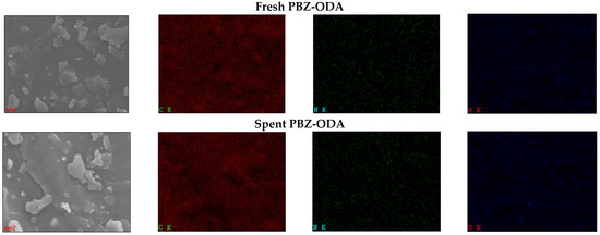 SEM images with elemental mapping of fresh and spent PBZ-ODA.