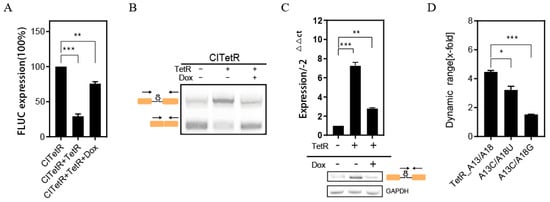 Based on the aforementioned observation, it is feasible to construct a Dox-based “off-type” reversible switch using C2ITetR for regulating gene expression. However, its regulatory efficiency requires improvement. To optimize this, we focused on two key aspects: enhancing basal fluorescence expression in the absence of Dox and reducing expression leakage after Dox addition.