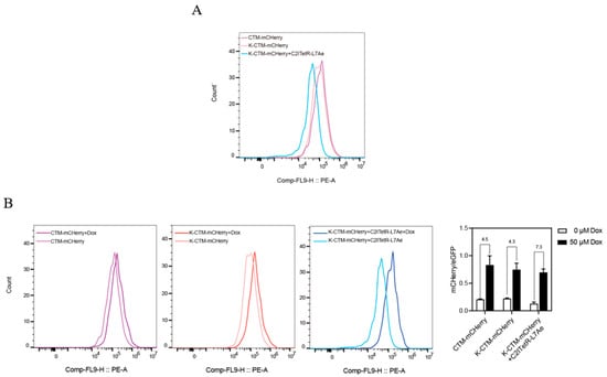 Upon the addition of Dox, the cascade effect of the combined switch markedly enhanced the regulatory efficiency of mCherry expression (Figure 12B,C), achieving up to a 7.3-fold increase. This demonstrates that the dual regulation by the L7Ae protein and Dox can effectively address the leakage issue of CTM-mCherry in the initial state, thereby improving the rigor of regulation.