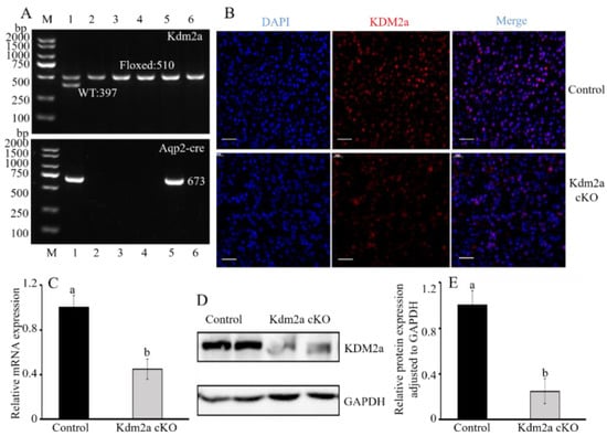 - Xiong, X.; Huang, X.; Zhu, Y.; Hai, Z.; Fei, X.; Pan, B.; Yang, Q.; Xiong, Y.; Fu, W.; Lan, D.; et al. Testis-specific knockout of Kdm2a reveals nonessential roles in male fertility but partially compromises spermatogenesis. Theriogenology 2023, 209, 9–20. [Google Scholar] [CrossRef]