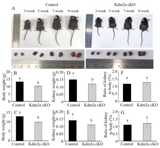 2.2. Kdm2a Confirmation of the Deletion of Kdm2a in the Kidney