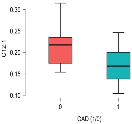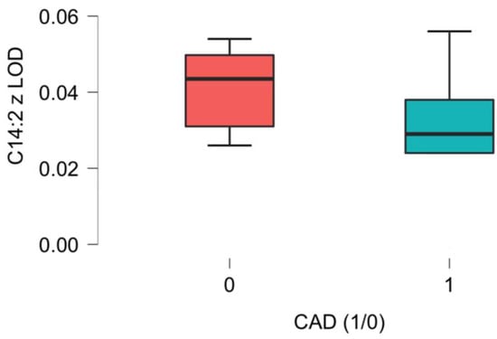 | C14:1 cis-5-Tetradecenoyl-carnitine | 0.10 (0.08–0.14) | 0.10 (0.07–0.13) | 0.13 (0.10–0.15) | 0.002 * |