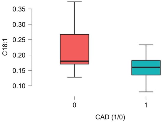 | C18:1 Oleoyl-carnitine/Vaccenyl-carnitine/Elaidic-carnitine | 0.17 (0.15–0.19) | 0.16 (0.14–0.18) | 0.18 (0.17–0.27) | 0.007 * |