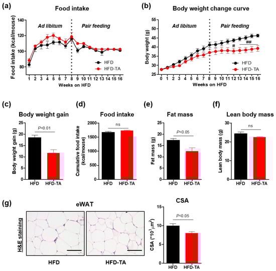 2.1. Tryptamine Reduces Body Weight and Fat Mass During Short-Term Intraperitoneal Injection Treatment Under HFD Conditions