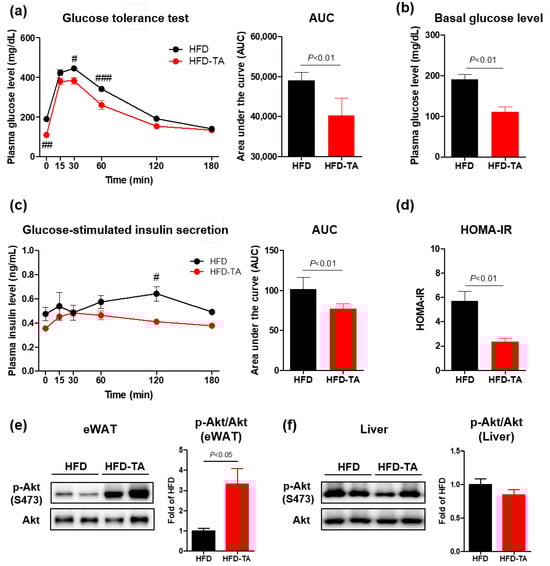 4.5. Intraperitoneal Glucose Tolerance Test (ipGTT) and Insulin Signaling Analysis