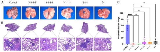 2.4. Fewer Vaccine Doses Were Efficient in Curbing Metastasis in Melanoma Animal Models