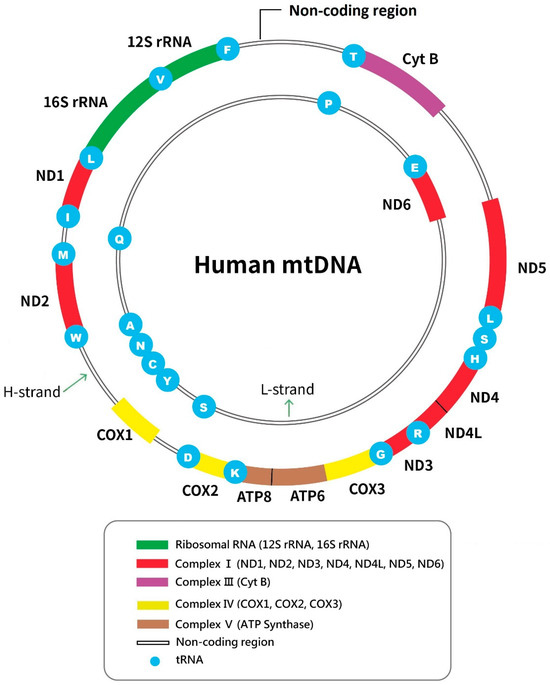 Thus, damage and dysfunction of mitochondria can be associated with development and progression of pulmonary fibrosis. Yet mtDNA variants, which may result in mitochondrial dysfunction, were rarely investigated in patients with IPF. Mitochondria have their own DNA, separated from the nuclear genome. Human mtDNA is a circular double-stranded DNA (one heavy and one light strand) of 16,569 base pairs [16]. Although the majority of mitochondrial proteins are encoded by the nuclear genome, mtDNA does code 13 important mitochondrial proteins (including part of complex I, and all of complex III, IV, and V of the ETC), 2 ribosomal RNAs (rRNAs), and all 22 mitochondrial tRNAs. The 13 mtDNA coded proteins are transcribed and translated by mitochondrial rRNAs and tRNAs [17]. Thus, variants in the mitochondrial genome may affect synthesis of ETC proteins and mitochondrial function.