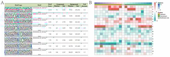 - Cheng, A.; Grant, C.C.; Noble, W.S.; Bailey, T.L. MoMo: Discovery of statistically significant post-translational modification motifs. Bioinformatics 2019, 35, 2774–2782. [Google Scholar] [CrossRef]