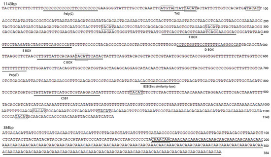 Nucleotide sequence forecast of the mitochondrial CR and CCR of C. coromandus. Several conserved motifs were identified along this fragment: putative ETAS elements (underlined), boxes (F, E, D, C), Bird similarity-box, blocks (CSB1), and repeated sequences (CAAACAA). Palindromic motifs (TACAT, ATGTA) are also represented in the figure. All complete repeating units are underlined for emphasis and easy identification.