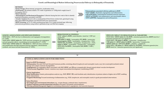 - Fevereiro-Martins, M.; Santos, A.C.; Marques-Neves, C.; Guimarães, H.; Bicho, M.; Afonso, C.; Ferreira, J.; Santo, R.E.; Teixeira, F.; Rosa, R.; et al. Complete Blood Count Parameters as Biomarkers of Retinopathy of Prematurity: A Portuguese Multicenter Study. Graefes Arch. Clin. Exp. Ophthalmol. 2023, 261, 2997–3006. [Google Scholar] [CrossRef]