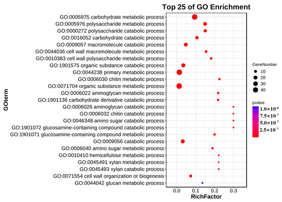 The 2000 bp upstream promoter sequences of the CgCBM genes were retrieved from the C. graminicola TZ-3 genome [34]. The PlantCARE online tool (http://bioinformatics.psb.ugent.be/webtools/plantcare/html/, accessed on 6 October 2024) was employed for CARE identification, while GO functional enrichment analysis was conducted using the website (https://www.omicshare.com/tools, accessed on 6 October 2024) [59,60].