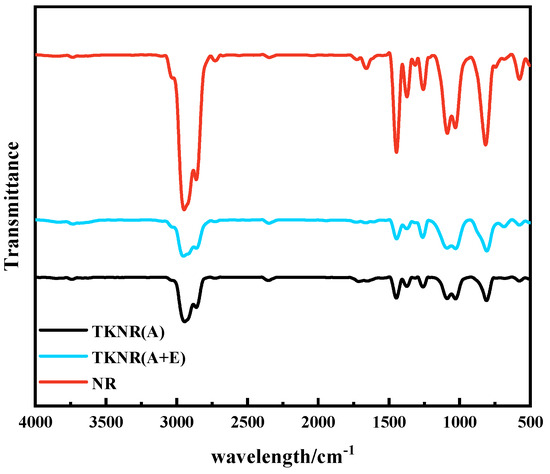 FTIR spectra of NR and TKNR. (A + E) refers to the alkali–enzyme method for extracting TKNR, while (A) refers to the alkali method for extracting TKNR.