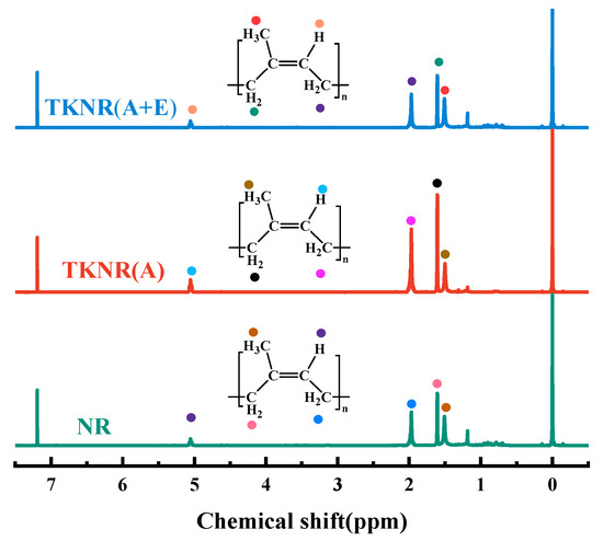1H NMR spectra of NR and TKNR. (A + E) refers to the alkali–enzyme method for extracting TKNR, while (A) refers to the alkali method for extracting TKNR.