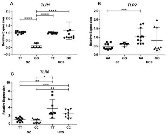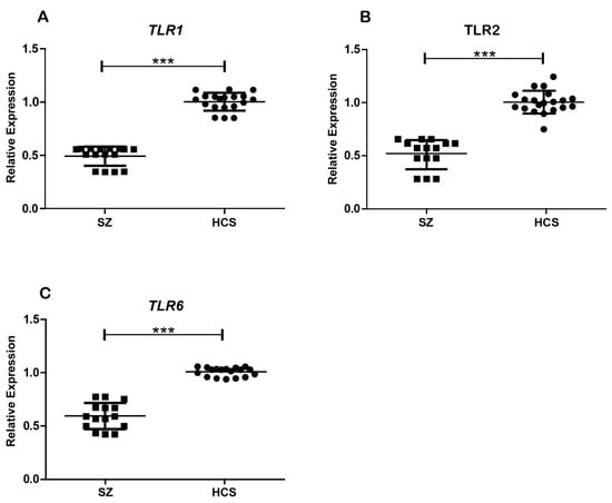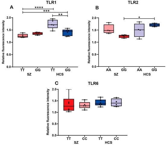 - Sotelo-Ramírez, C.E.; Camarena, B.; Sanabrais-Jiménez, M.A.; Zaragoza-Hoyos, J.U.; Ordoñez-Martínez, B.; Escamilla-Orozco, R.; Gómez-González, B. Toll-Like Receptor (TLR) 1, 2, and 6 Gene Polymorphisms Support Evidence of Innate Immune Factors in Schizophrenia. Neuropsychiatr. Dis. Treat. 2023, 19, 2353–2361. [Google Scholar] [CrossRef]