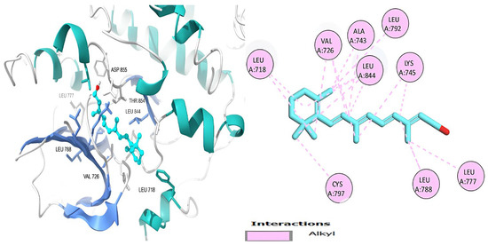 Retinol’s 3D and 2D molecular interactions with EGFR TK residues.
