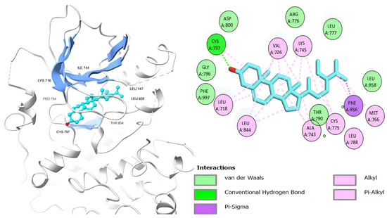 β-Sitosterol’s 3D and 2D molecular interactions with EGFR TK domain residues.