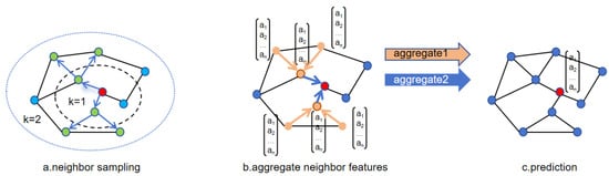 - Hamilton, W.; Ying, Z.; Leskovec, J. Inductive representation learning on large graphs. Adv. Neural Inf. Process. Syst. 2017, 30, 1025–1035. [Google Scholar]