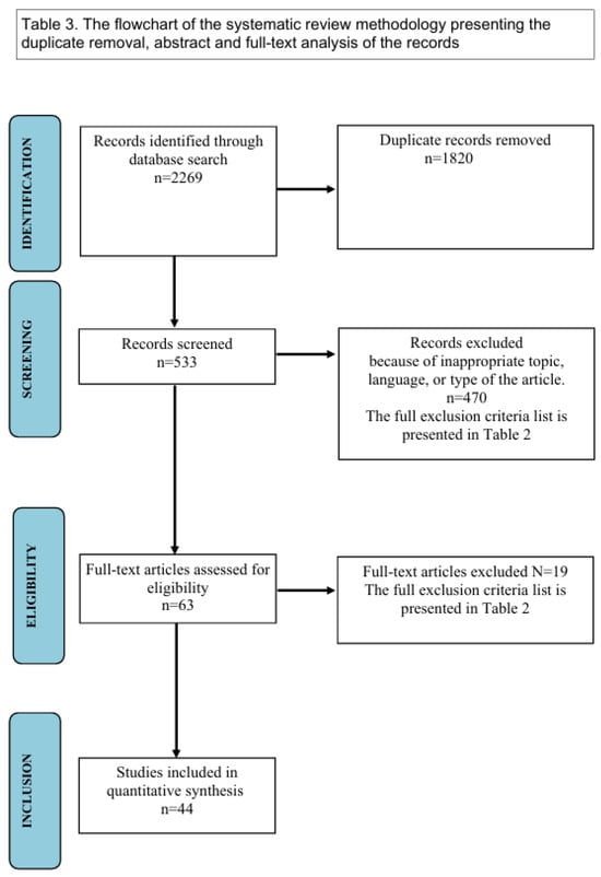 Flow diagram—the selection process of the articles. Adapted from “The PRISMA 2020 statement: an updated guideline for reporting systematic reviews” []. Copyright by the British Medical Association.