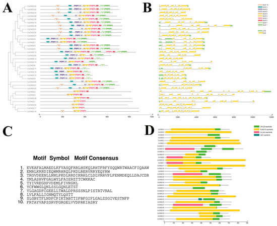 Phylogenetic relationship, gene structure analysis, conserved domain, and conserved motifs analysis of CNGC gene family of C. clementina. (A) Conserved motifs analysis of CcCNGCs; (B) Gene structure analysis of CcCNGCs; (C) The motif symbol; (D) Conserved domain of CcCNGCs.