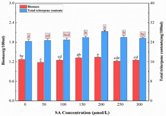 2.1. Evaluation of the Effect of SA Concentration on Mycelial Biomass and Triterpenoid Production in TMB