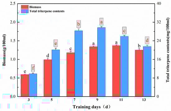 2.2. Influence of Cultivation Duration on Mycelial Biomass and Total Triterpenoid Content of TMB
