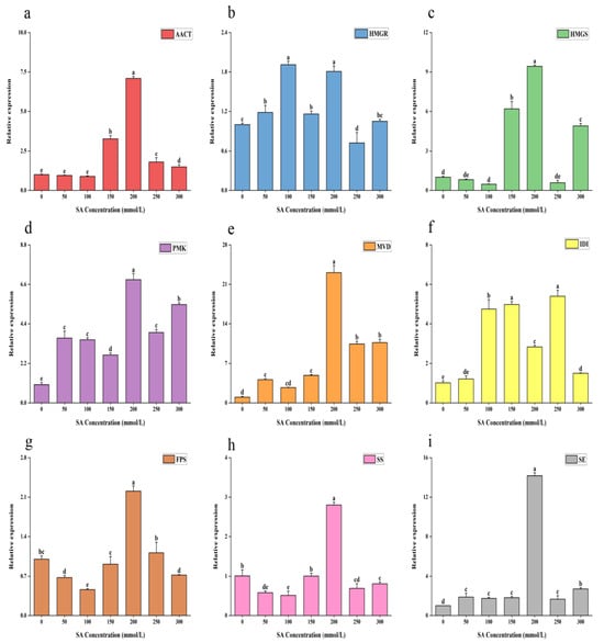 2.3. Expression of Related Genes Under Different Concentrations of Salicylic Acid