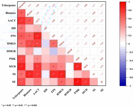 2.4. Analysis of Correlation Between Total Triterpenes and Genes Under Salicylic Acid Treatment
