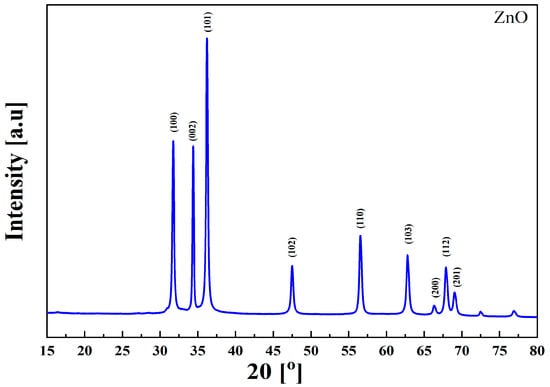 For the crystallographic analysis of ZnO, an XRD measurement was performed using a Malvern Panalytical Aeris X-ray diffractometer with a PIXcel1D-Medipix3 detector (Malvern Panalytical, Worcestershire, UK). The measurement was performed with a step of 0.0027° in the 2θ range of 15–80°.