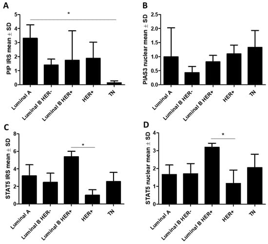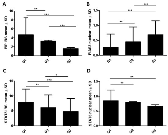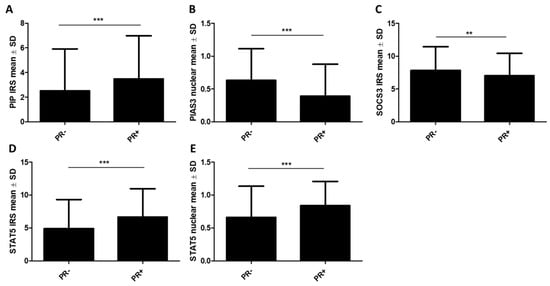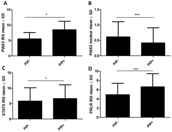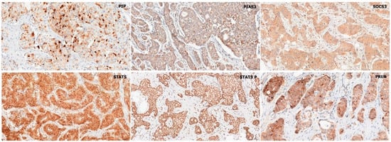2.1.1. Association of PIP, PIAS3, SOCS3, STAT5, and PRLR with Clinicopathological Factors