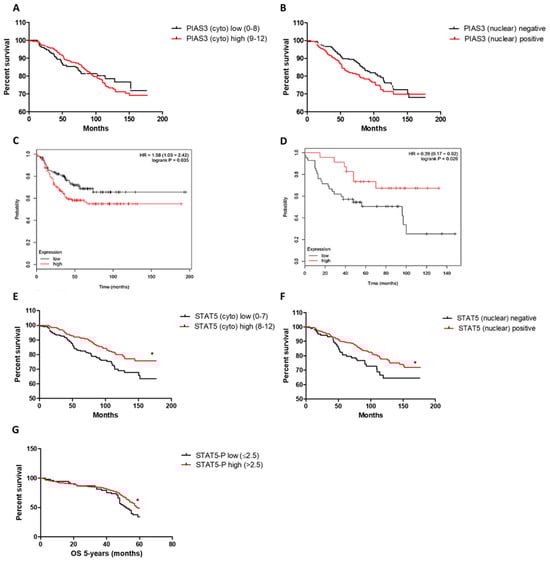 - Yang, S.-F.; Hou, M.-F.; Chen, F.-M.; Ou-Yang, F.; Wu, Y.-C.; Chai, C.-Y.; Yeh, Y.-T. Prognostic value of protein inhibitor of activated STAT3 in breast cancer patients receiving hormone therapy. BMC Cancer 2016, 16, 20. [Google Scholar] [CrossRef][Green Version]