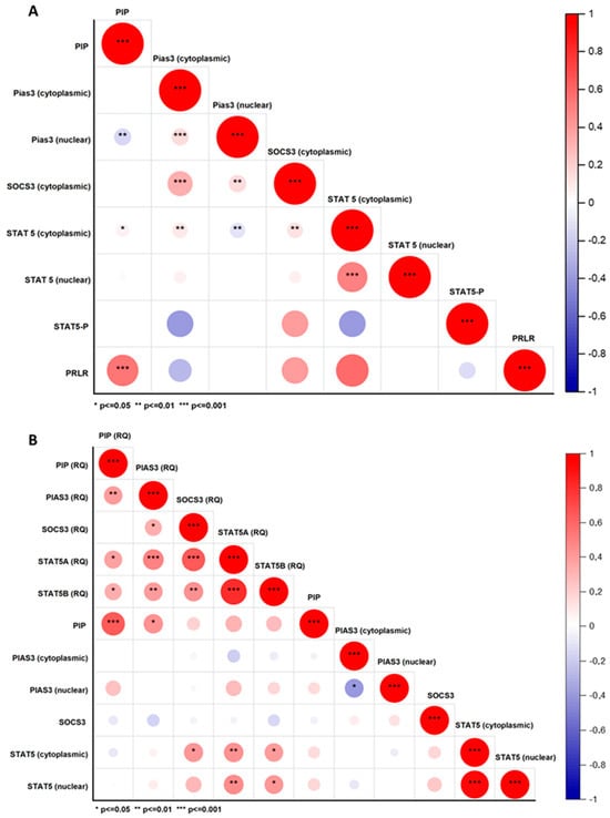 2.1.2. Association of STAT Inhibitors (PIAS3 and SOCS3), STAT5, and PRLR with PIP Expression