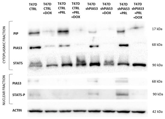 - Sauer, N.; Matkowski, I.; Bodalska, G.; Murawski, M.; Dzięgiel, P.; Calik, J. Prognostic Role of Prolactin-Induced Protein (PIP) in Breast Cancer. Cells 2023, 12, 2252. [Google Scholar] [CrossRef]