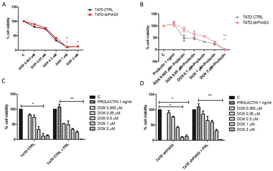 - Howell, S.J.; Anderson, E.; Hunter, T.; Farnie, G.; Clarke, R.B. Prolactin receptor antagonism reduces the clonogenic capacity of breast cancer cells and potentiates doxorubicin and paclitaxel cytotoxicity. Breast Cancer Res. 2008, 10, R68. [Google Scholar] [CrossRef] [PubMed]