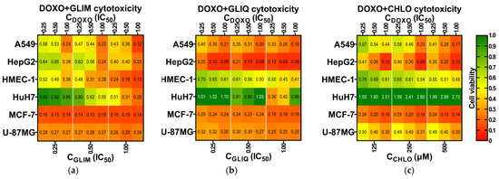 The synergistic effects of drug combinations were studied in various cancer cell lines, including MCF-7 (human breast cancer), A549 (human lung cancer), U-87 MG (human malignant glioma), HepG2 (human liver cancer), and HUH7 (human liver cancer). HMEC-1, an immortalized human microvascular endothelial cell line, was used as a model for normal cells. All cell lines were purchased from ATCC (Rockville, MD, USA).