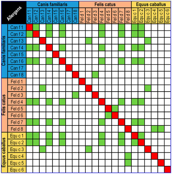 Potential cross-reactions between horse, dog and cat allergen molecules [11].