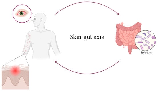| Systemic inflammation regulation | Intestinal permeability (“leaky gut”) allows inflammatory molecules to enter the bloodstream, influencing systemic inflammation, which, in turn, can exacerbate skin and eye pathologies. | [] |