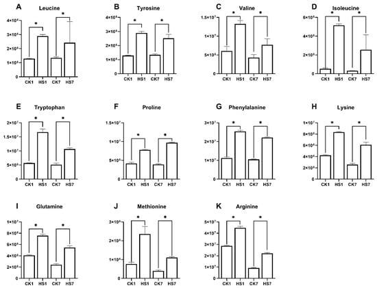 2.1. Metabolite Profiles Indicate That Pathways Related to Amino Acids Were the Most Active by Heat Stress