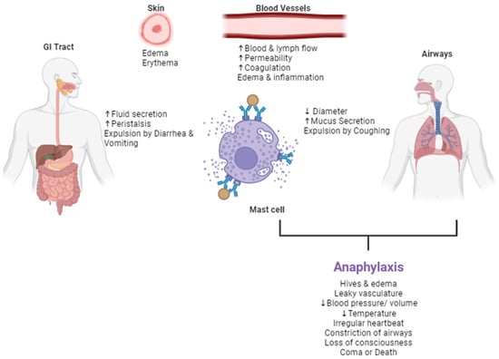 As the prevalence of food allergies has increased over the last few decades, so too has the number of hospitalizations due to food-induced anaphylaxis []. Therefore, while awareness has improved, fatality due to severe allergic reactions has not, and it is crucial to identify the underlying immune mechanism to identify treatments and interventions.