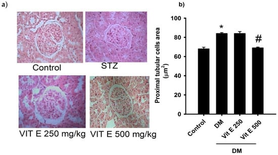 2.1. Effect of Vitamin E on the Cellular Area of the Proximal Tubules
