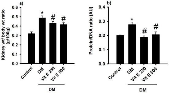 2.2. Effect of Vitamin E on Renal Hypertrophy and Protein/DNA Ratio