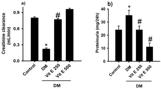 Chicago/Turabian StyleSegura Cobos, David, Esperanza Enedina Díaz Salgado, Dante Amato, Sinaí Ernesto Cardoso García, Tomás Ernesto Villamar Duque, Anayantzin Paulina Heredia Antúnez, Leonardo del Valle Mondragón, Gil Alfonso Magos Guerrero, and Elizabeth Alejandrina Guzmán Hernández. 2025. "Effect of Vitamin E on Diabetic Nephropathy in Streptozotocin-Induced Diabetic Rats" International Journal of Molecular Sciences 26, no. 4: 1597. https://doi.org/10.3390/ijms26041597