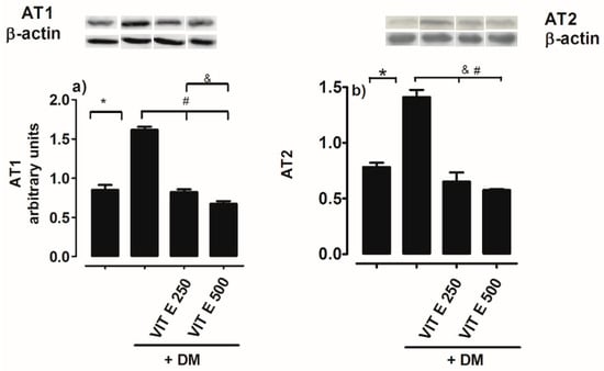 2.5. Effect of Vitamin E on AT1 and AT2 Receptor Protein Expression in the Renal Cortex