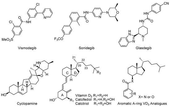 - DeBerardinis, A.M.; Banerjee, U.; Miller, M.; Lemieux, S.; Hadden, M.K. Probing the structural requirements for vitamin D3 inhibition of the hedgehog signaling pathway. Bioorg. Med. Chem. Lett. 2012, 22, 4859–4863. [Google Scholar] [CrossRef] [PubMed]